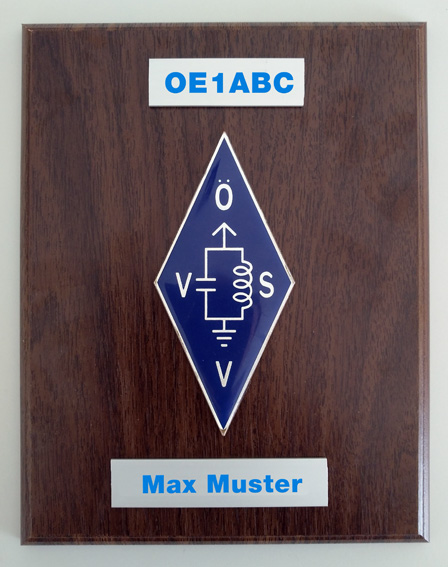 Format: 18 x 22,5cm, Rufzeichen und Name auf Alu. Schriftfarbe blau. Emailraute in der Mitte